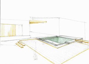 section through living room and pool