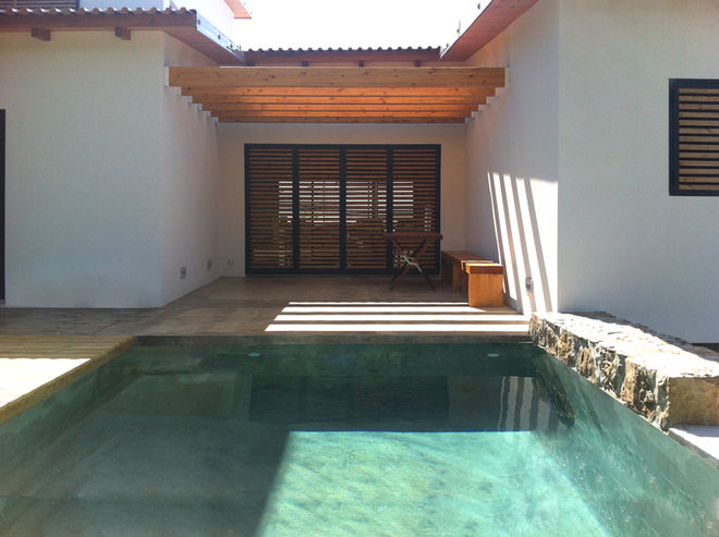 Rehabilitation of a house built in the 60’s, located in the Arrábida Natural Park, into a weekend getaway by the sea. The project deals with the local building laws applied to constructions in protected natural zone that don’t allow existing openings to be modified or the typology of the roof to be changed.